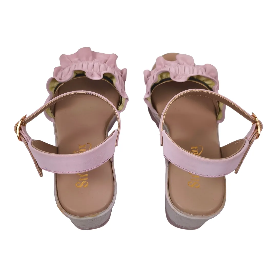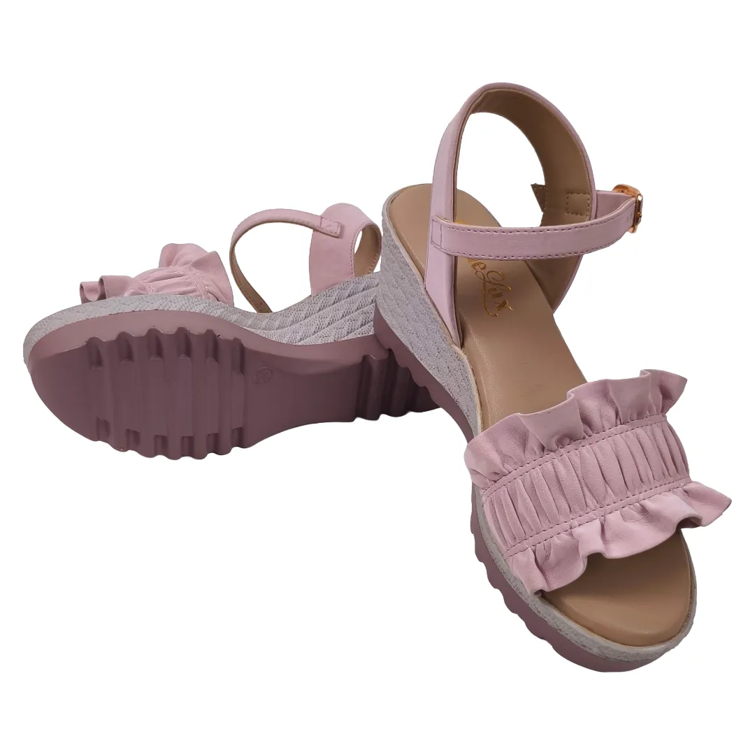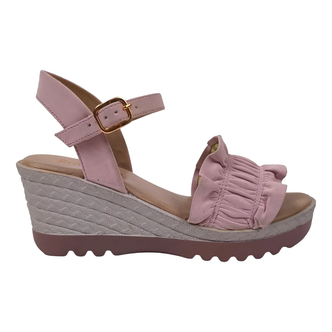 Tags: ankle strap wedges, blush pink sandals, casual party footwear women, comfortable wedge heels, pink wedge sandals women, ruffle wedge heels ladies, StrideLux sandals, stylish wedge sandals, women platform wedges