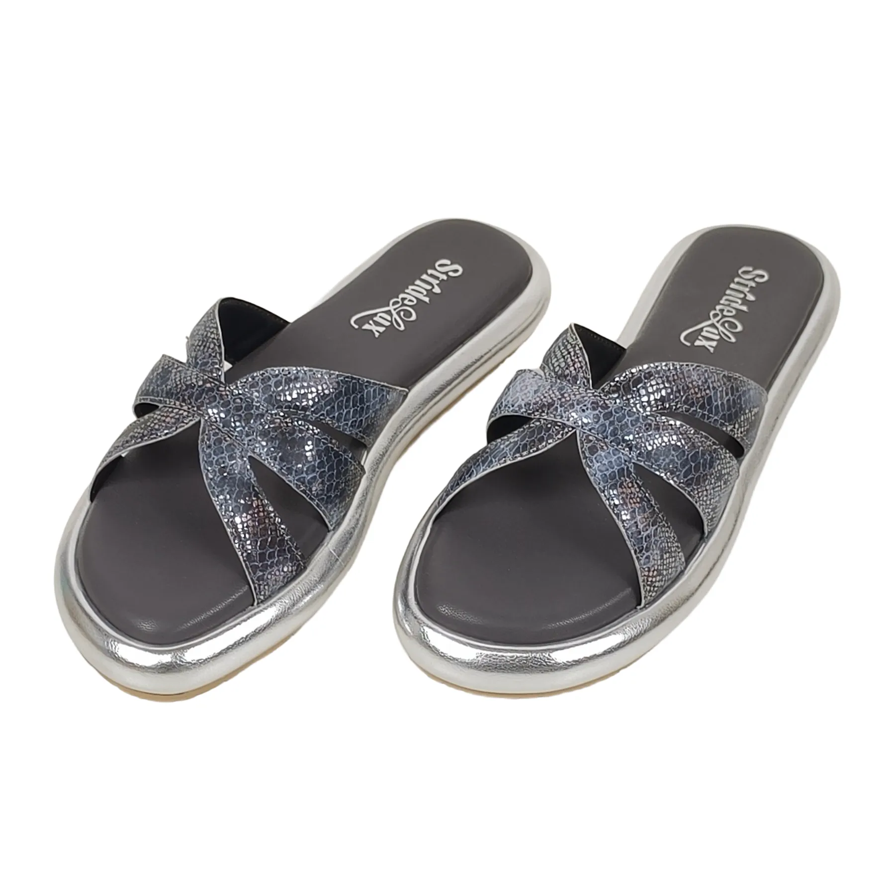 StrideLux Gilded Braided Metallic Slide Sandals