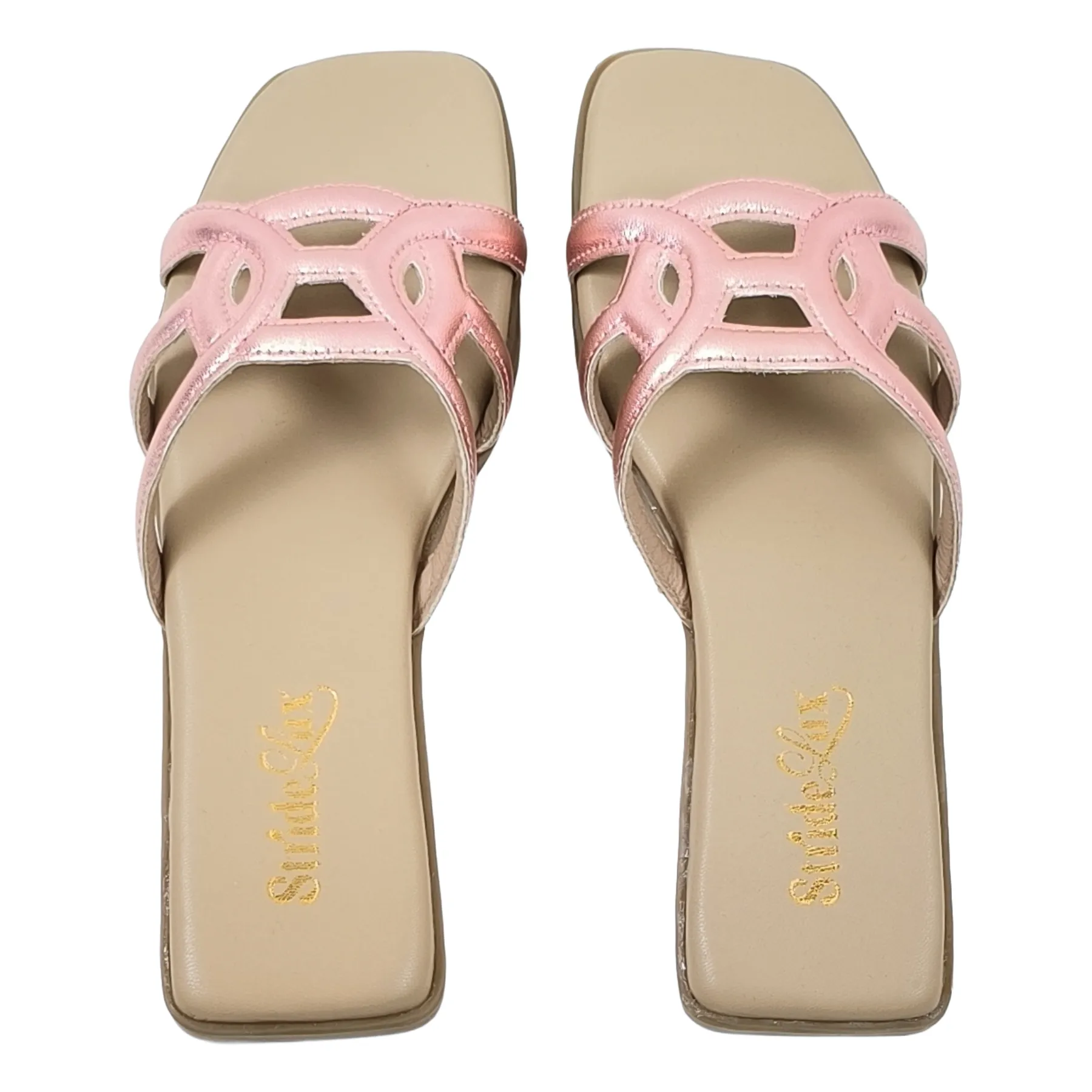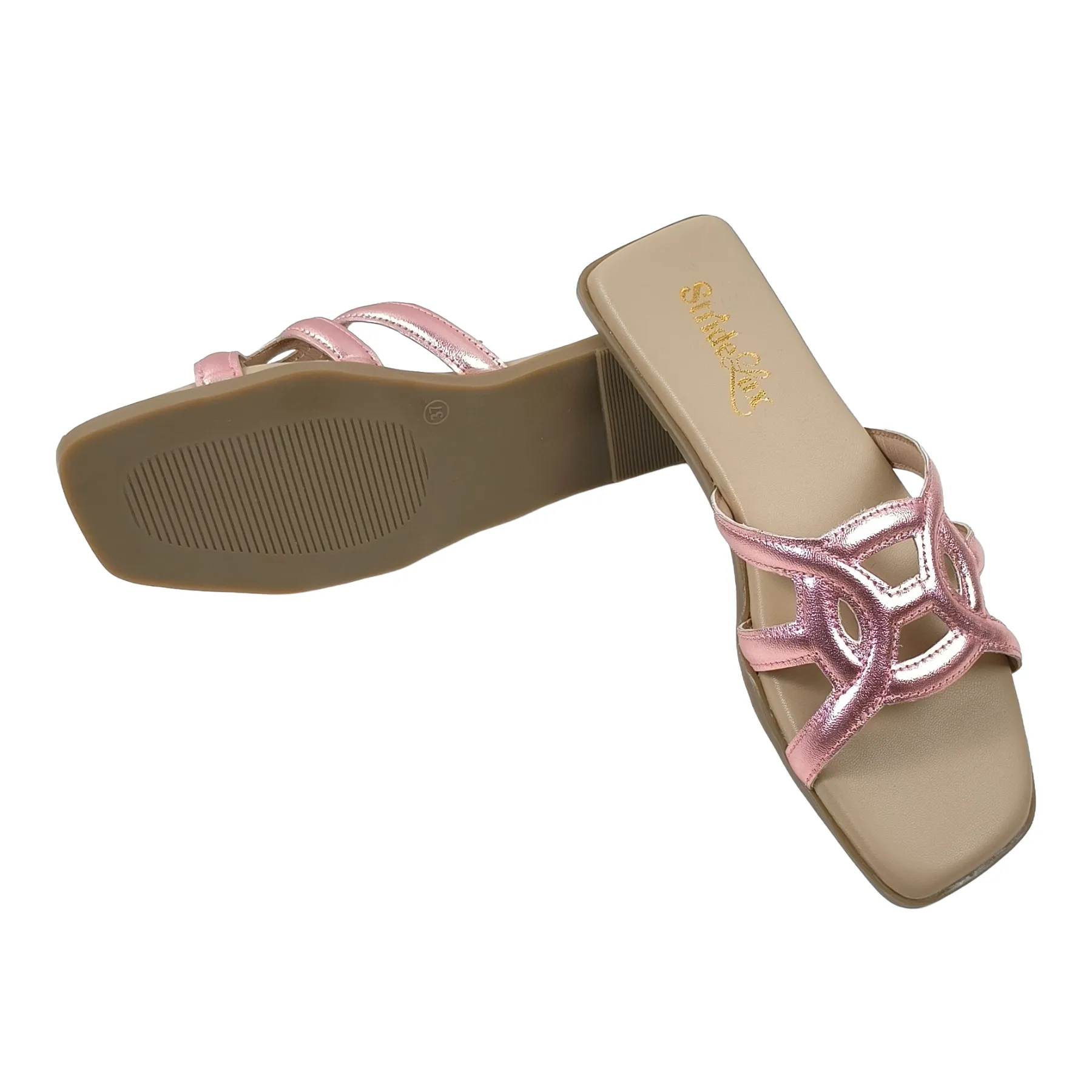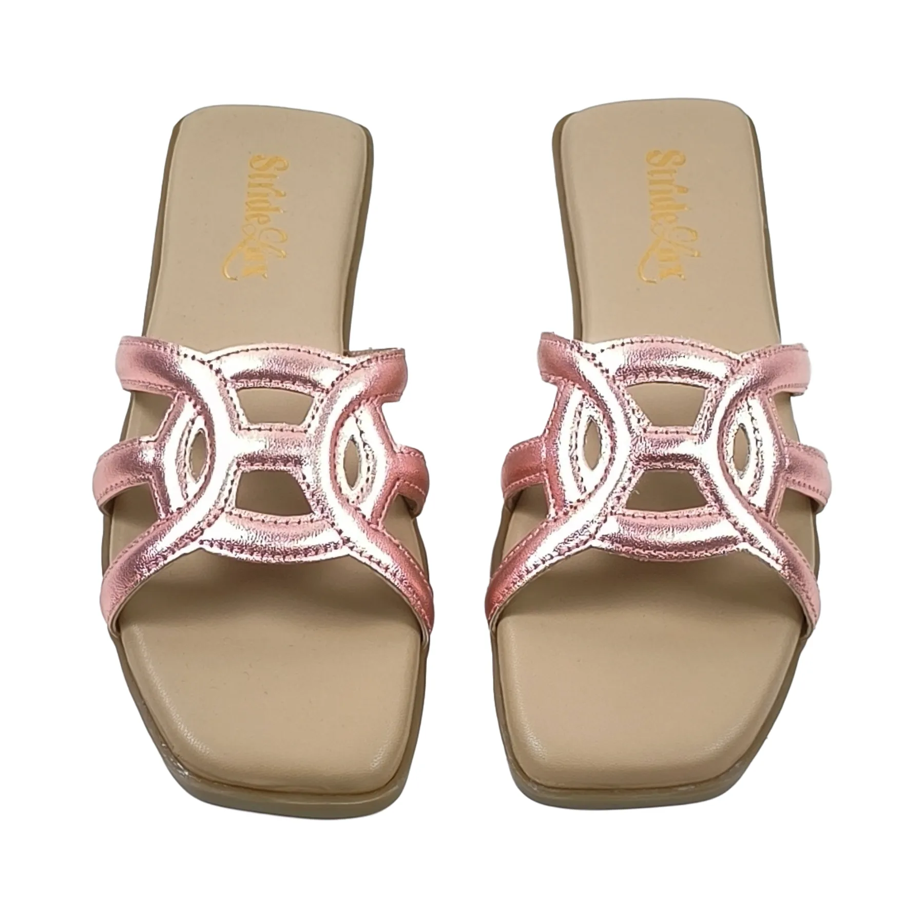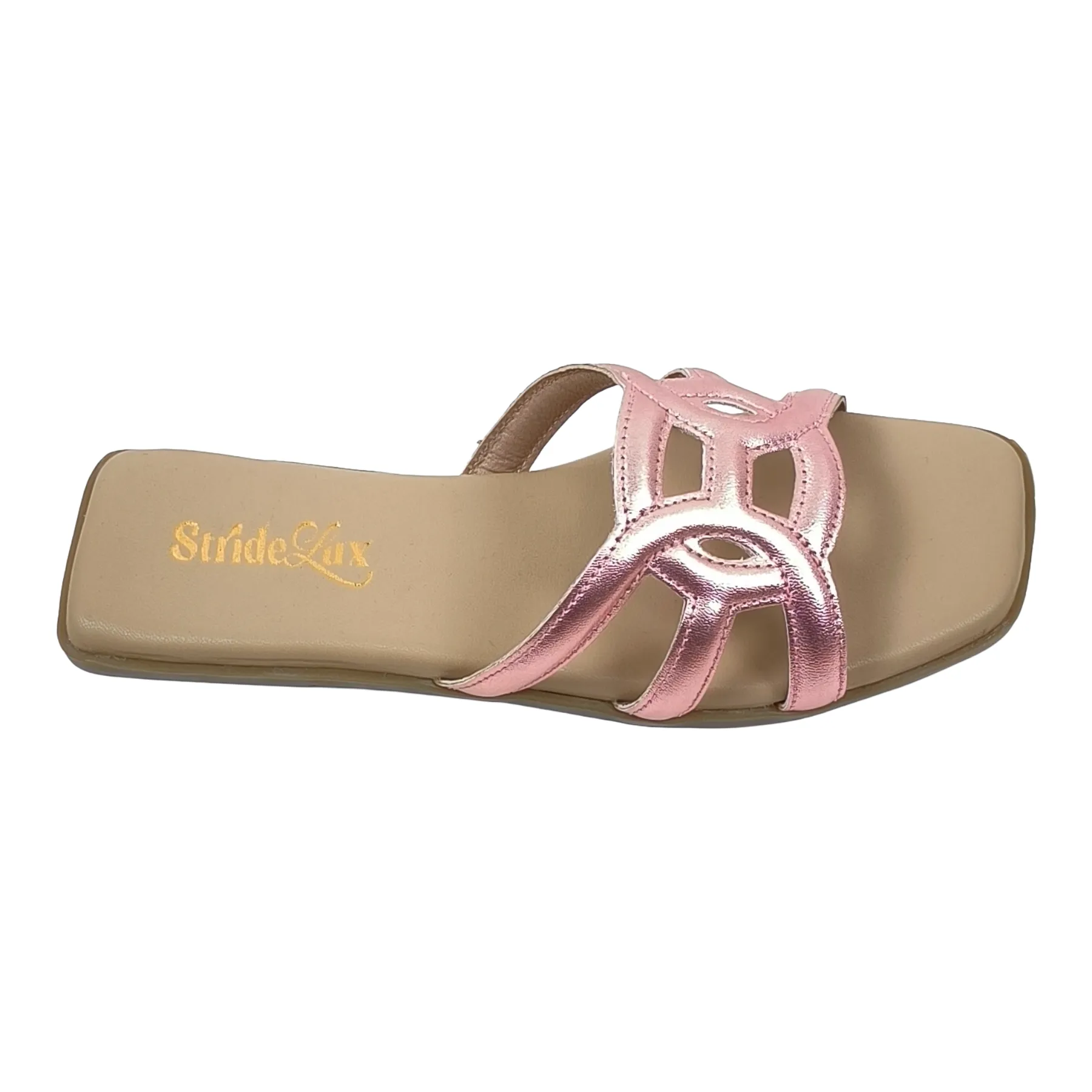 StrideLux Rose Pink flat slides modern design aur everyday comfort ka perfect combination hain. Elegant geometric cut straps ke saath soft cushioned footbed in flats ko daily wear ke liye ideal banata hai. Lightweight sole aur easy slip-on style aapko all-day comfort deta hai, chahe aap casual outing ho ya festive occasion.